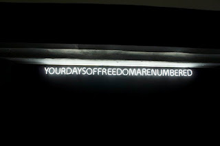 The writing on the black wall, which lies in the Black Cube says “Your days of freedom are numbered.”