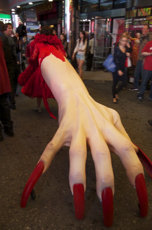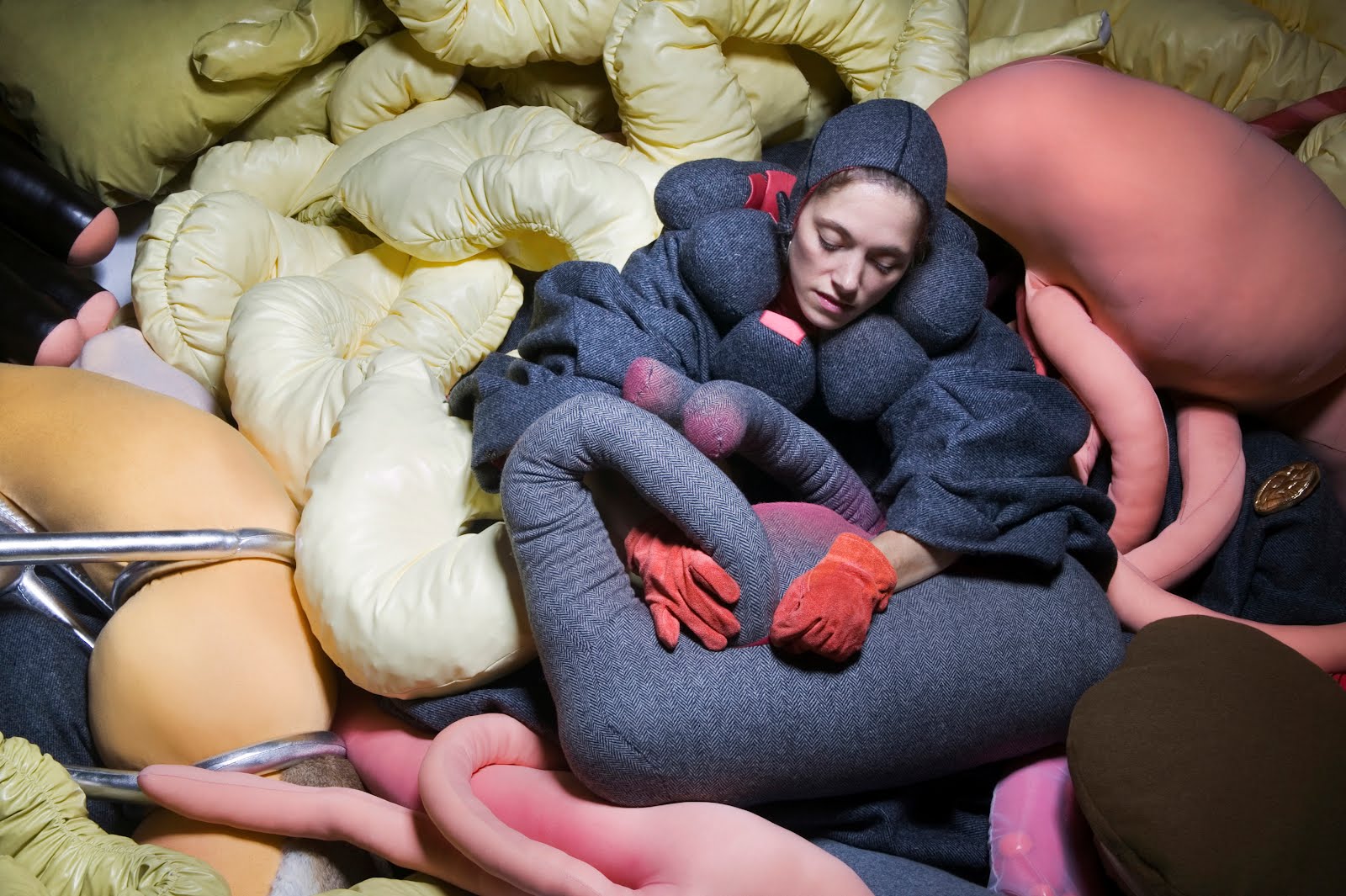 (With the sourtesy of Gallery Zilberman) Any uncensored or truly spontaneous expression can seem inappropriate in our society, Bezzola says. The character in “Inside-Out,” while singing a sad and desperate requiem, drops her protective walls. Emotions, formerly withheld and experienced as a heavy burden, blossom into colorful sculptures like beautiful flowers and spill out of her plump and bulging body to fall at the feet of the audience. After complete liberation from censorship and full self-acknowledgement, she has nothing left to hide. Bezzola’s performances rely heavily on costumes, but “costume” is a misleading term for her “wearable sculptures,” which is the artist’s preferred term for them, “Because they are extensions of my body that illustrate something that would otherwise be of a more intangible nature.” Bezzola says the core of her inspiration is her personal experience as a human being and a member of society. Her wearable sculptures also reflect this idea. She creates them to illustrate the magical process of transformation that any person can go through in real life to find their own true self.